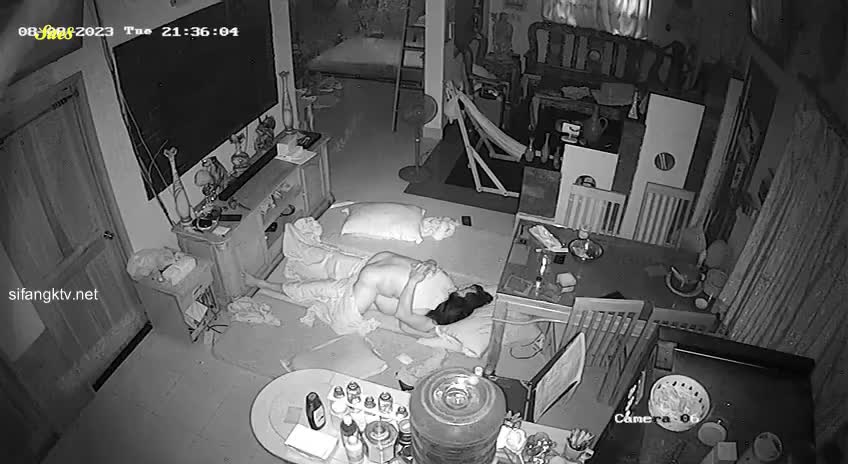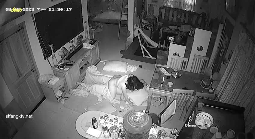 家庭监控入侵恩爱夫妻客厅打地铺做爱